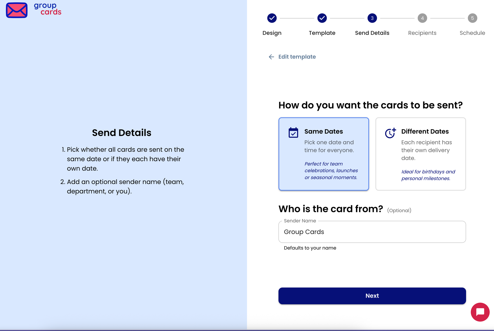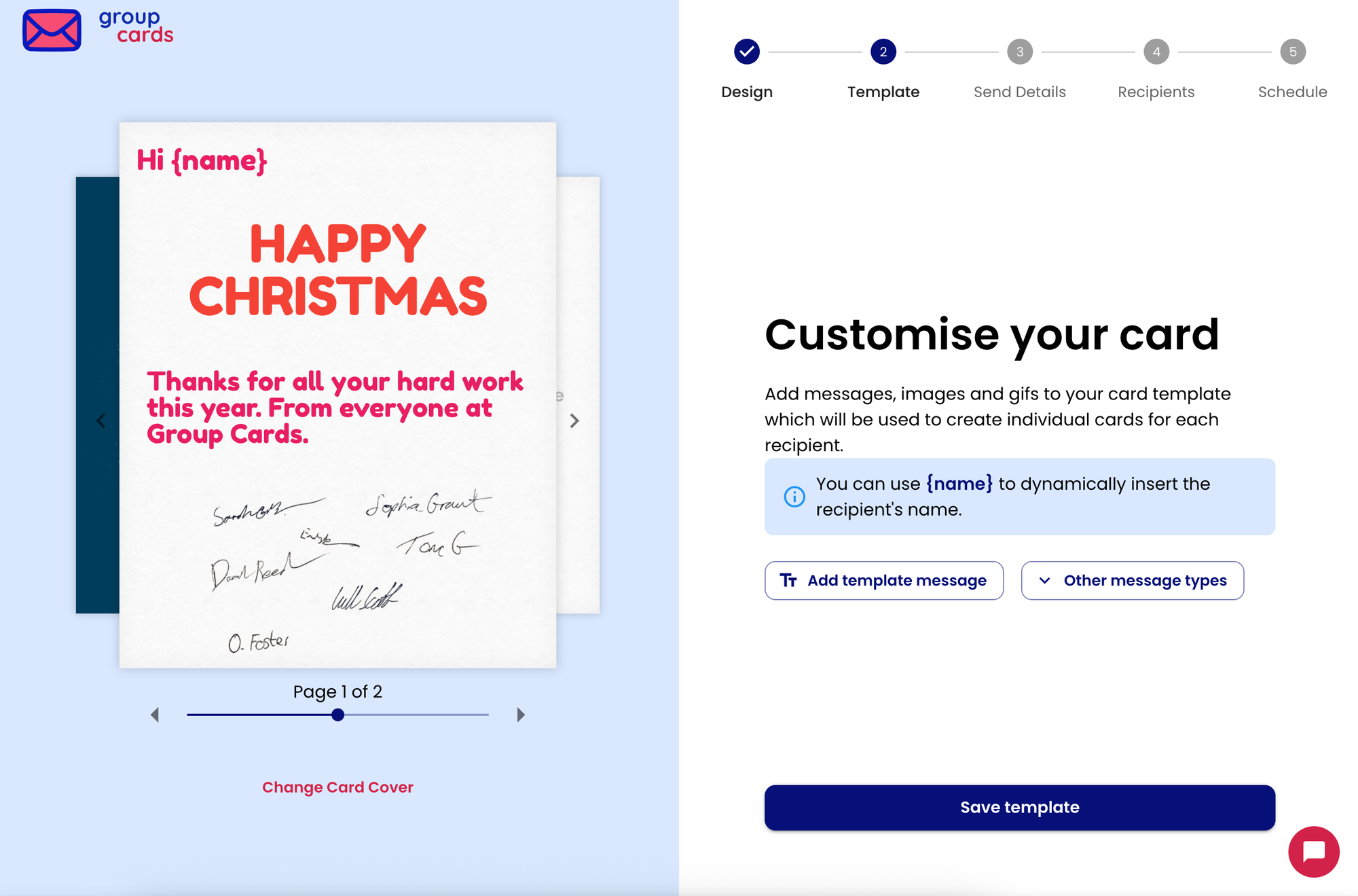 Confirm sending to generate all your cards and gift cards. As long as the send date is in the future you'll also be able to customise each card individually or add more gift card contributions just like our regular cards.