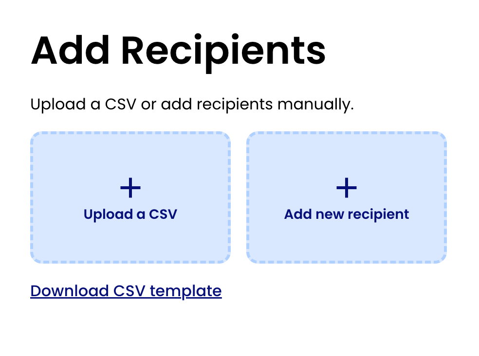 Add text, images, GIFs and more to your card design. You can include {name} as a template variable which will be replaced with the recipient's name.